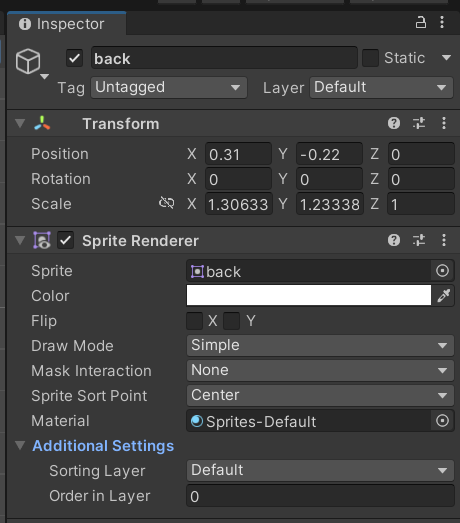 + 여기서는 back(0), ground(2), Player(3)으로 설정